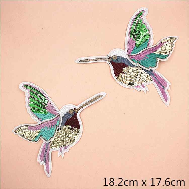 ワッペン アップリケ 刺繍 装飾 パッチ DIY リメイク 手芸 スパンコール 布 羽 ファッション スウェットシャツ ジャケット アクセサリー エスニック グリーン ブルー