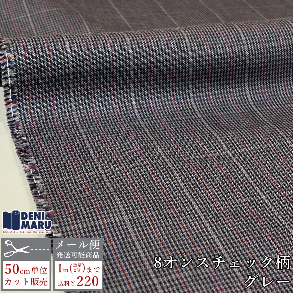 チェック柄 生地 千鳥格子 生地 薄手 8オンス グレー レトロ ヴィンテージ 綿 コットン 生地 日本製 国産 岡山 綿100% グレー系 生地 ジャケット パンツ セットアップ コート アウター バッグ 井原 でに丸