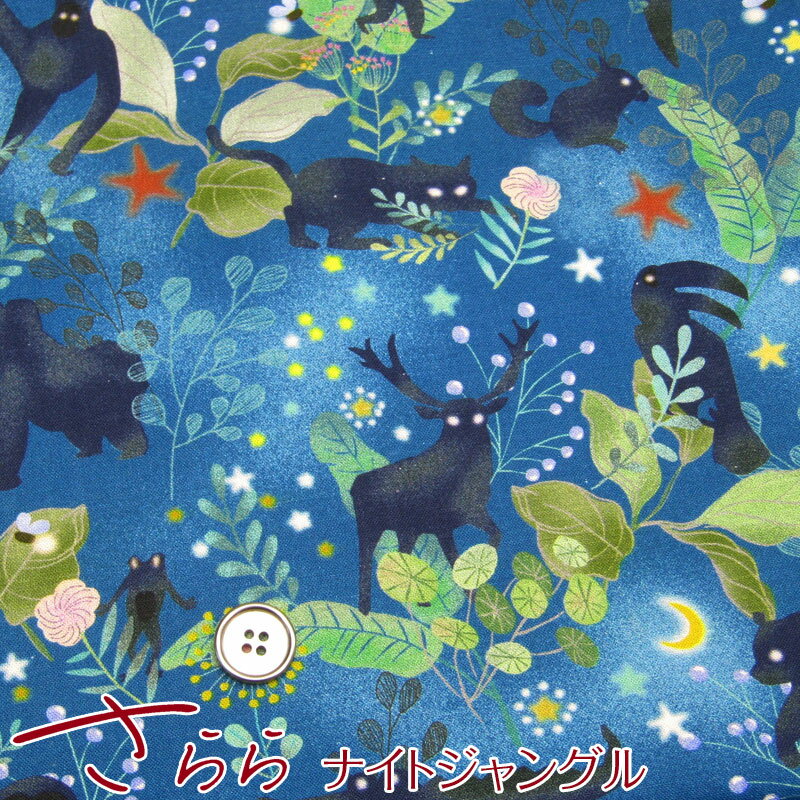 シーチング デジタルプリント さららJAPANナイトジャングル(単位50cm)どうぶつ/植物/シルエット/夜/綿/生地