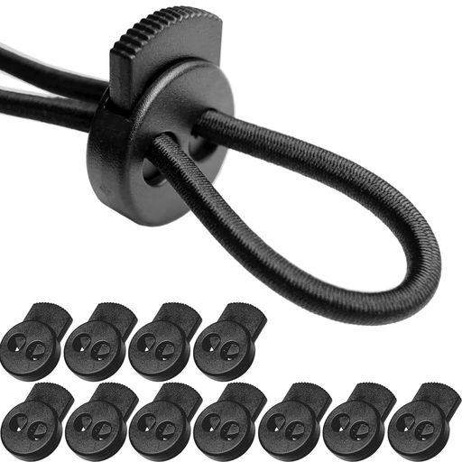 DLLMコードストッパー結ばない靴紐強力コードロック2穴内穴5mm紐止めスプリングロープストッパーゴム紐パラコードハイキングシューズ登山靴ブーツ12個丸平型058ブラック