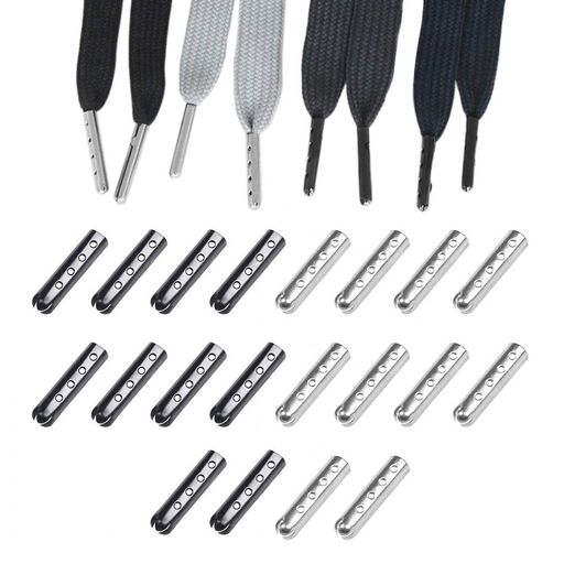 [YFFSFDC]靴紐シューレース先端金具20個セットひも用スニーカー/ブーツアクセサリー靴パーツ先っぽチップパイプ金属製(シルバー+ブラック)