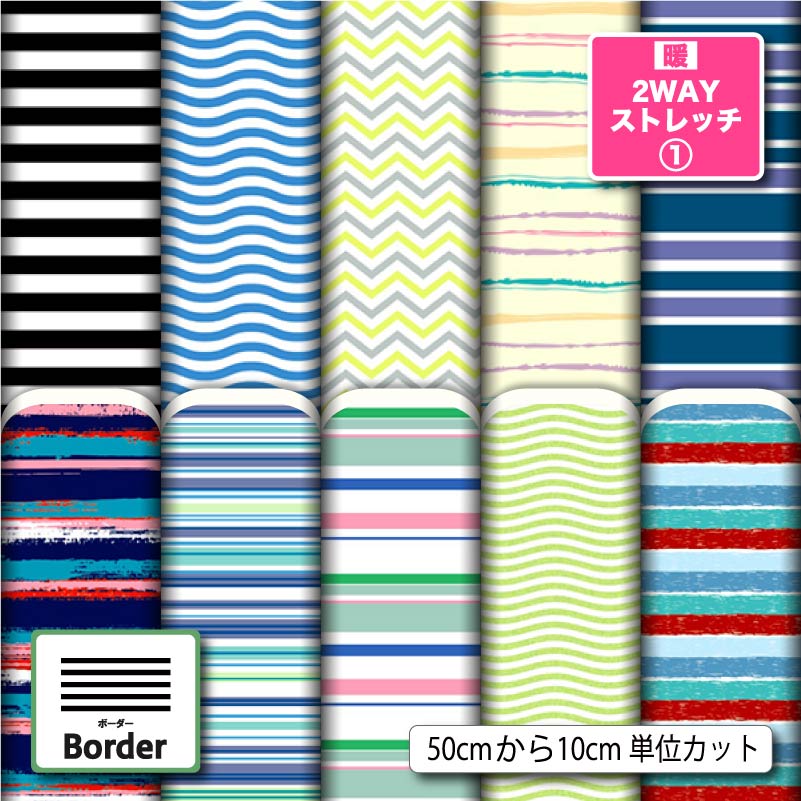 保温 暖2wayストレッチニット1 生地 布 秋冬 ボーダー柄 縦横に伸びる UVカット 商用利用可 ハンドメイド 手作り 手芸 犬服 水着 レオタード クッションカバー (border_1)