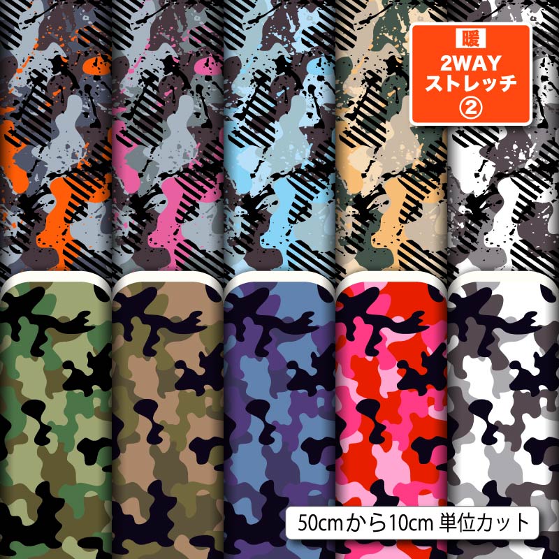 暖2wayストレッチニット2 生地 布 秋冬 カモフラージュ 迷彩柄 おしゃれ かっこいい 男の子 裏ピーチ起毛 保温 縦横に伸びる 商用利用可 犬服 下着 肌着 インナー 部屋着 Tシャツ ハンドメイド 手作り 手芸 (camouflage_3)