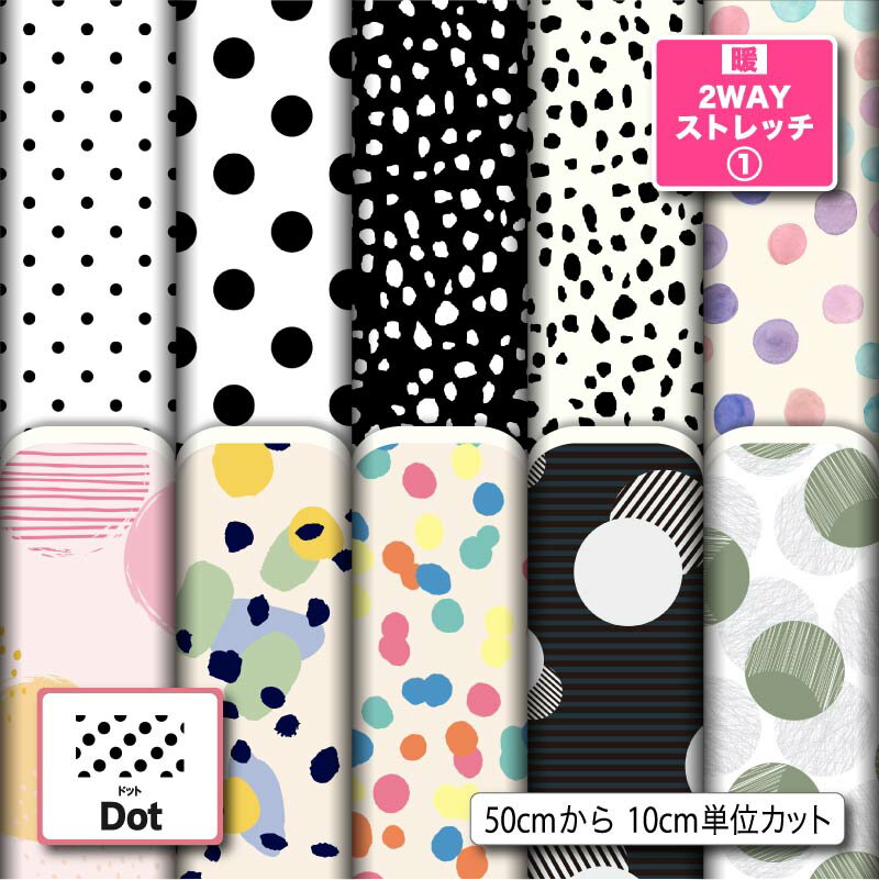 保温 暖2wayストレッチニット1 生地 布 秋冬 かわいい 水玉 ドット柄 縦横に伸びる UVカット 商用利用可 ハンドメイド 手作り 手芸 犬服 水着 レオタード クッションカバー (dot_1)