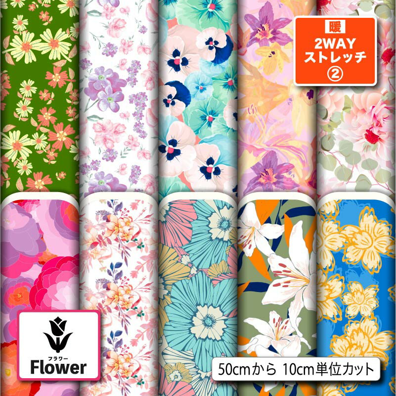 保温 暖2wayストレッチニット1 生地 布 秋冬 花柄 縦横に伸びる UVカット 商用利用可 ハンドメイド 手作り 手芸 犬服 水着 レオタード スポーツウエア レギンス クッションカバー (flower_2)