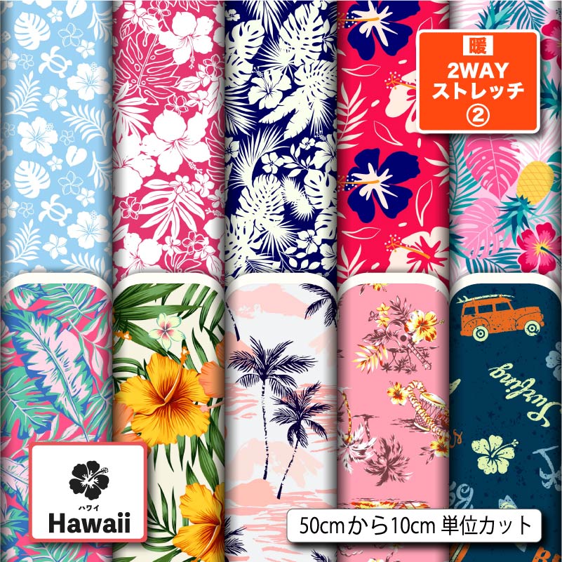 ハワイアン柄 保温 暖2wayストレッチニット2 生地 布 秋冬 裏ピーチ起毛 縦横に伸びる 商用利用可 ハンドメイド 手作り 手芸 犬服 下着 肌着 インナー タイツ 部屋着 Tシャツ (hawaii_4)