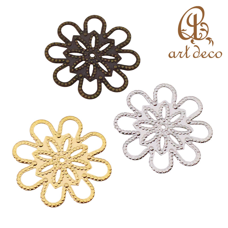 透かしパーツ 花 幾何学 スカシ 2個/10個 24mm×24mm アクセサリーパーツ ハンドメイド オリジナル 材料 金具 装飾