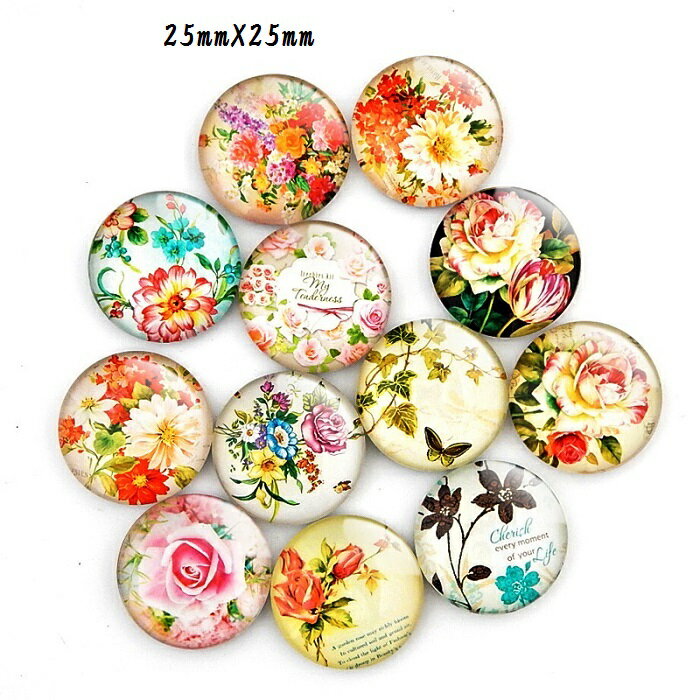 1個 花 フラワー 25mm ガラスカボション デコパーツ ボダンパーツ ハンドメイド アクセサリーパーツ 手芸材料