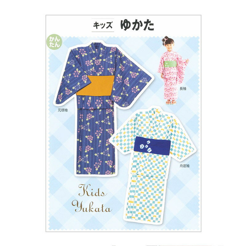 切ってそのまま使える実物大型紙と説明書つき「キッズゆかた」のパターンです。【 出来上がりサイズ(約) 】 こども男女(身長101〜150cm)【 適した布地 】 肌ざわりのよい中肉タイプの布地。(リップル/ブロード/シーチング/先染/ドビー/ゆかた地)必要な材料、用布量は画像をご確認下さい。おしゃれキッズの夏は「ゆかた」がなければ始まらない!舟底袖・元禄袖・長袖の3種の袖が選べる子供用ゆかた。直線が多いからミシンで楽に縫うことができます。(身長134〜150cmの女子は腰揚げを縫わずにおはしょりを作り着せつけます。)※この型紙を使用した商用目的の製品化はご遠慮ください。※メール便可能です。フィットパターンサン キッズゆかた 6018 【メール便可】 【浴衣・甚平におすすめアイテム】一覧はこちら! 【フィットパターン サン シリーズ】型紙一覧はこちら!