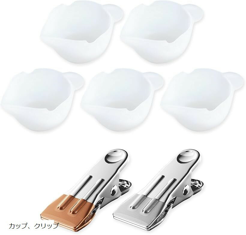 UVレジン用ツール 調色パレット シリコンカップ 調色スティック 強力クリップ (カップ、クリップ, 長さ5.3cm x 幅3.5cm x 高さ2.5cm)