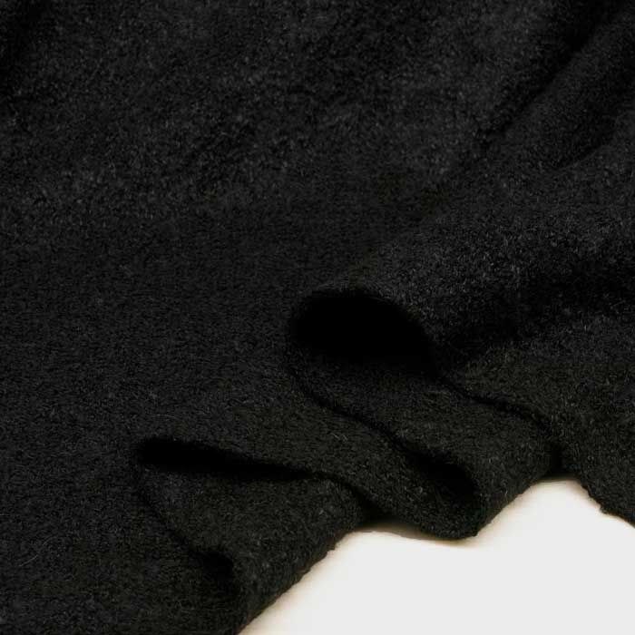 ニット生地 リングヤーン ウール ブークレ 黒 160cm幅 日本製 紡毛 50cm単位の価格 カットソー はおりもの レディス メンズ 子供服 手芸 クラフト 生地 布 屋 さん 通販