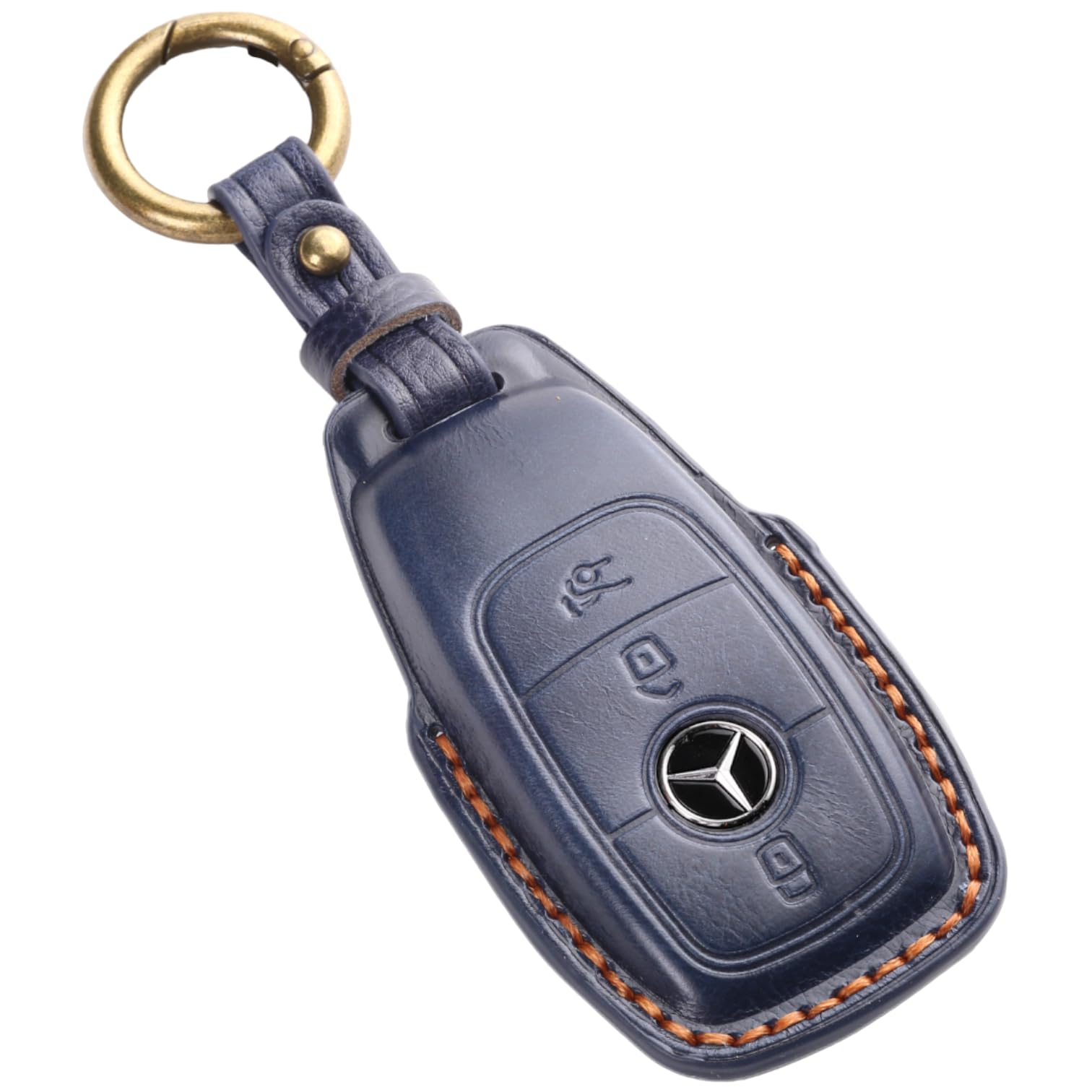 [smasol] メルセデス ベンツ benz AMG Aクラス Bクラス Cクラス Eクラス GLクラス GLB GLC GLE 本革 キーカバー キーケース (3D高級 / Type-E ネイビー)