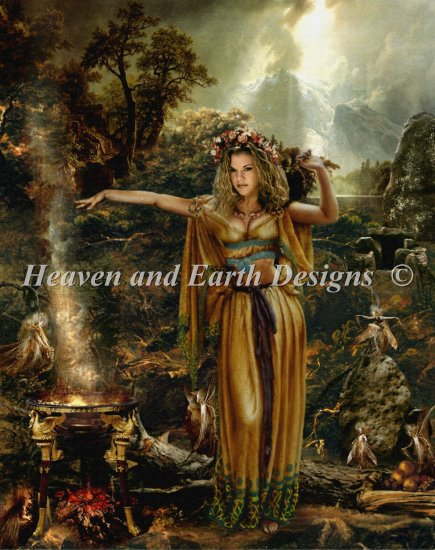クロスステッチ刺繍図案 Heaven And Earth Designs HAED 輸入 上級者 Howard David Johnson ケルト族/詩の女神ゲール Brigit. Gaelic Goddess of Poetry 全面刺し