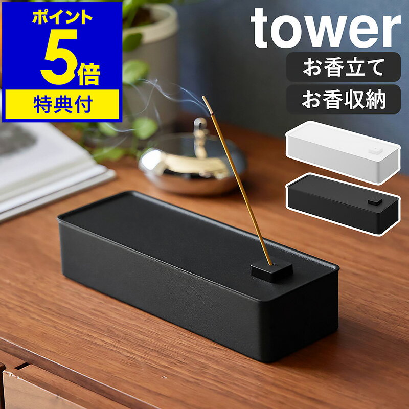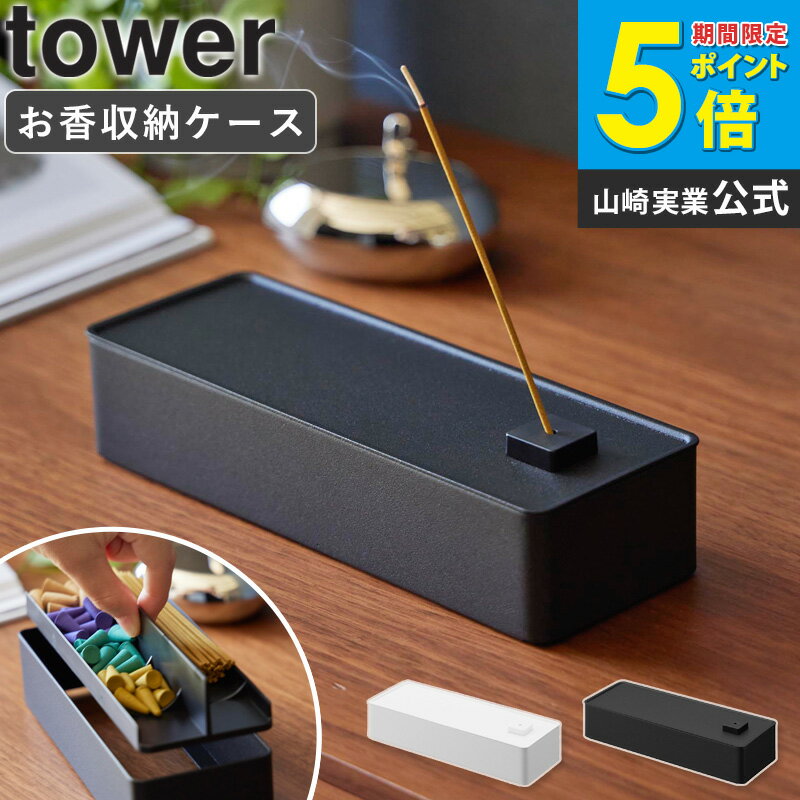 お香収納ケース タワー 山崎実業 tower お香立て ホワイト ブラック 1869 1870 お香 お香たて 横置き 収納 ボックスタイプ ケース ボックス コーン スティック シンプル おしゃれ 北欧 白 黒 【フラリア】【ポイント5倍】