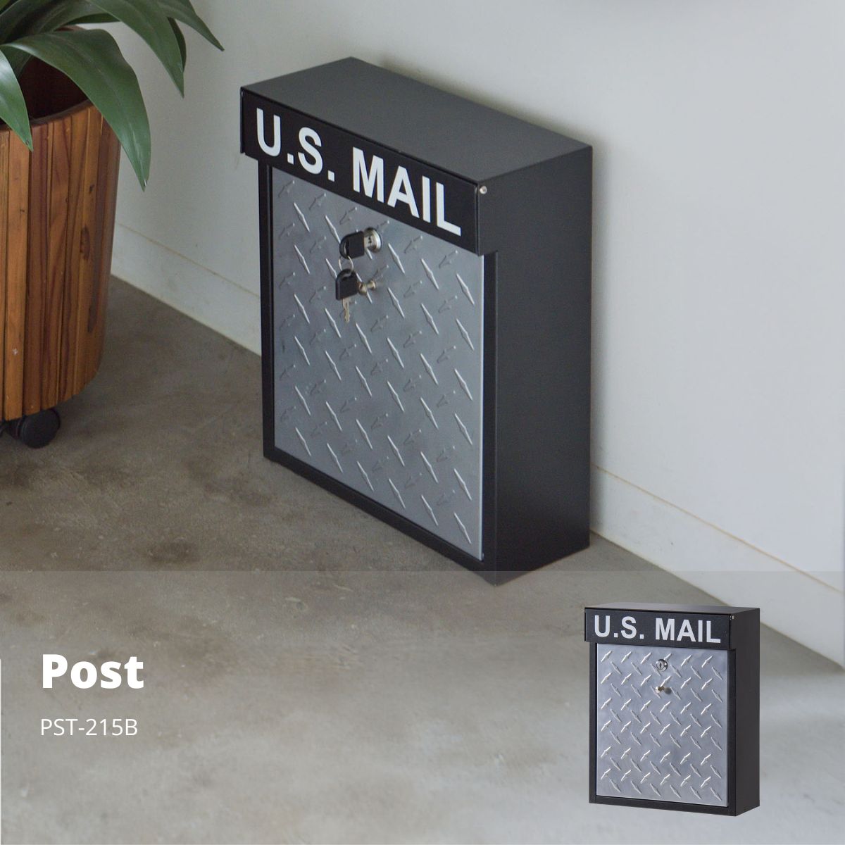 ■サイズ・色違い・関連商品▼カラー展開はコチラ▼シルバー(現在表示中)ブラック ■商品詳細【商品サイズ】W30.5×D13×H37cm 重量3kg【素材】スチール(粉体塗装) 【組立状態】完成品付属工具:なしお客様用意:なし組立人数:-組み立て時間:-【静的耐荷重】設定無し【機能・特徴】●蓋部分をチェッカープレートデザインにした、インダストリアルテイストのポスト。●投函口は幅26cm×高さ3cmと十分な広さを持っています。●付属のカギを使ってポストの中身を取り出すタイプなので、投函された物が勝手に取り出されるという心配もありません。●蓋は上部のロックを解除して手前に開く縦型式なので、開けたと同時に中の物が落ちてしまうという事もなく安心。【注意事項】※防水仕様ではございません。錆や郵便物が濡れる原因となりますので、軒下などの雨が直接かからない場所に取り付けてください。【キーワード】ポスト 郵便ポスト 郵便受け メールボックス スチール 鍵付き 壁掛け 壁付け 縦開き 上部ロック 投入口26cm×3cm 完成品 玄関 エントランス インダストリアル モダン カフェ風 防犯 W30.5×D13×H37 シルバー 東谷 PST-215B
