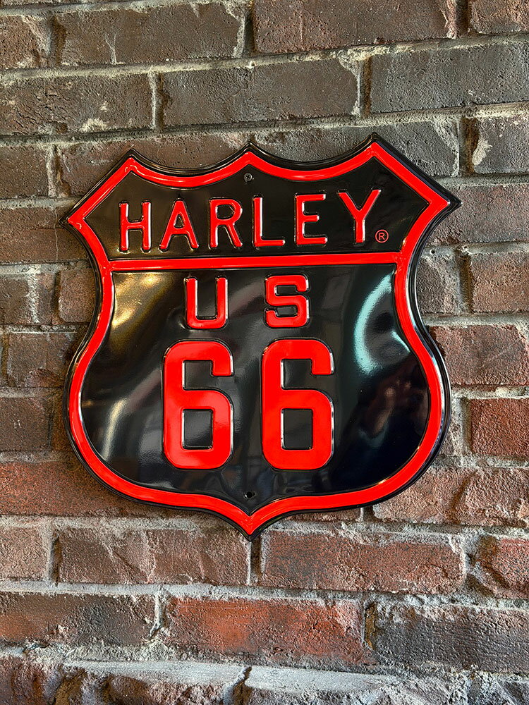 ハーレーダビッドソン ルート66 エンボス ティンサイン 看板 アメリカン雑貨 アメリカ雑貨 グッズ HARLEY DAVIDSON おしゃれ かっこいい バイク バイカー ブランド ガレージ