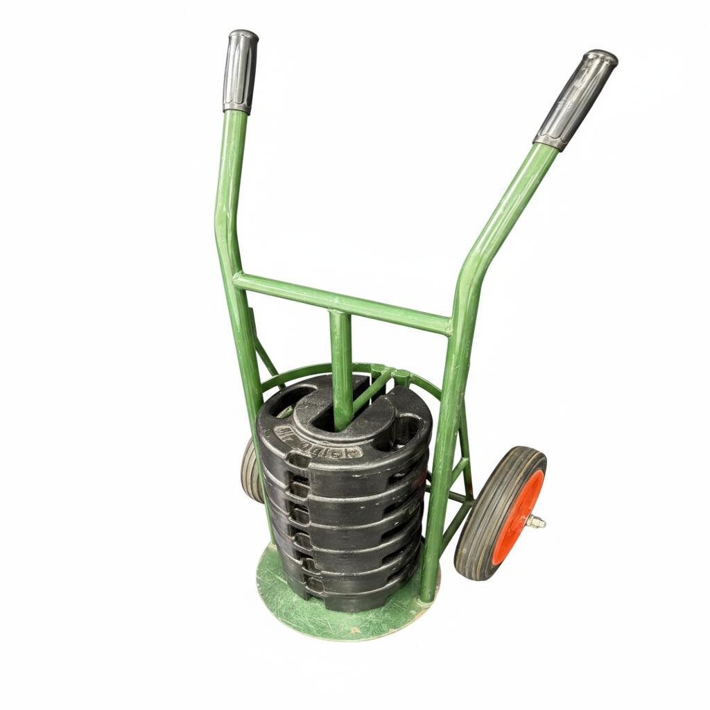 重り用の台車です。ミスタークイック用の重り6枚迄載せられます。 ノーパンクタイヤ仕様なのでパンクの心配もなく悪路でも使用できます。 サイズ:W500×D600×H1150mm 重量:20kg 材質:スチール製(焼付塗装)ノーパンク 耐荷重:120kg(最大20kg重り6個を積載可能) 本商品は台車の販売のみで、重りは含んでおりません。重りの画像は参考用として掲載しております。