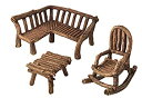 【中古】【輸入品・未使用】GlitZGlam ミニチュアフェアリーガーデン家具3ピース: ガーデンフェアリー用、丸太のウッドベンチ、ロッキングチェアーとミニチュアテーブル
