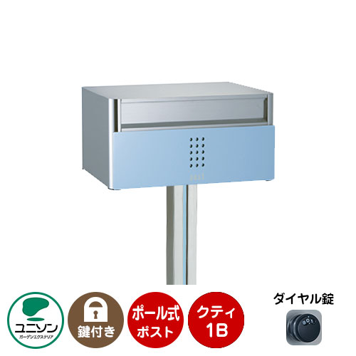 郵便ポスト 郵便受け QUTI クティ1B +ポールセット (イメージ画像:ベビーブルー) ユニソン ポール式ポスト 鍵付き ダイヤル錠 おしゃれ クール シンプル 戸建て 玄関 庭 かわいい 宅配 新居 新築 エクステリア リフォーム お祝い プレゼント