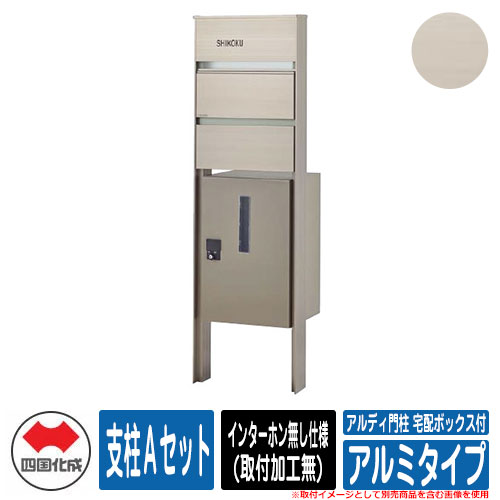 門柱 ポスト おしゃれ 宅配ボックス アルディ門柱 宅配ボックス付 独立式 支柱Aセット インターホン無し仕様(取付加工無) アルミタイプ 四国化成