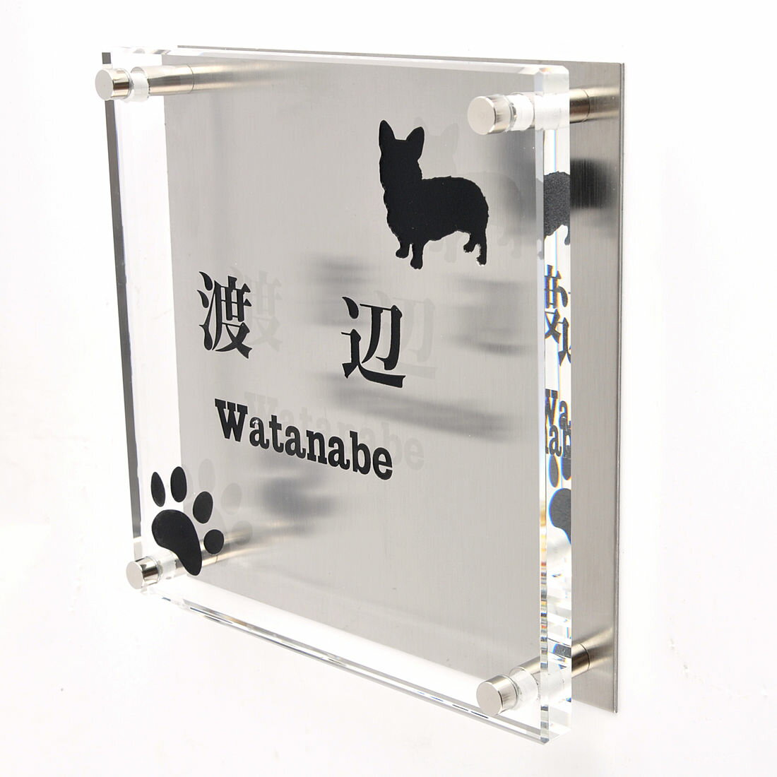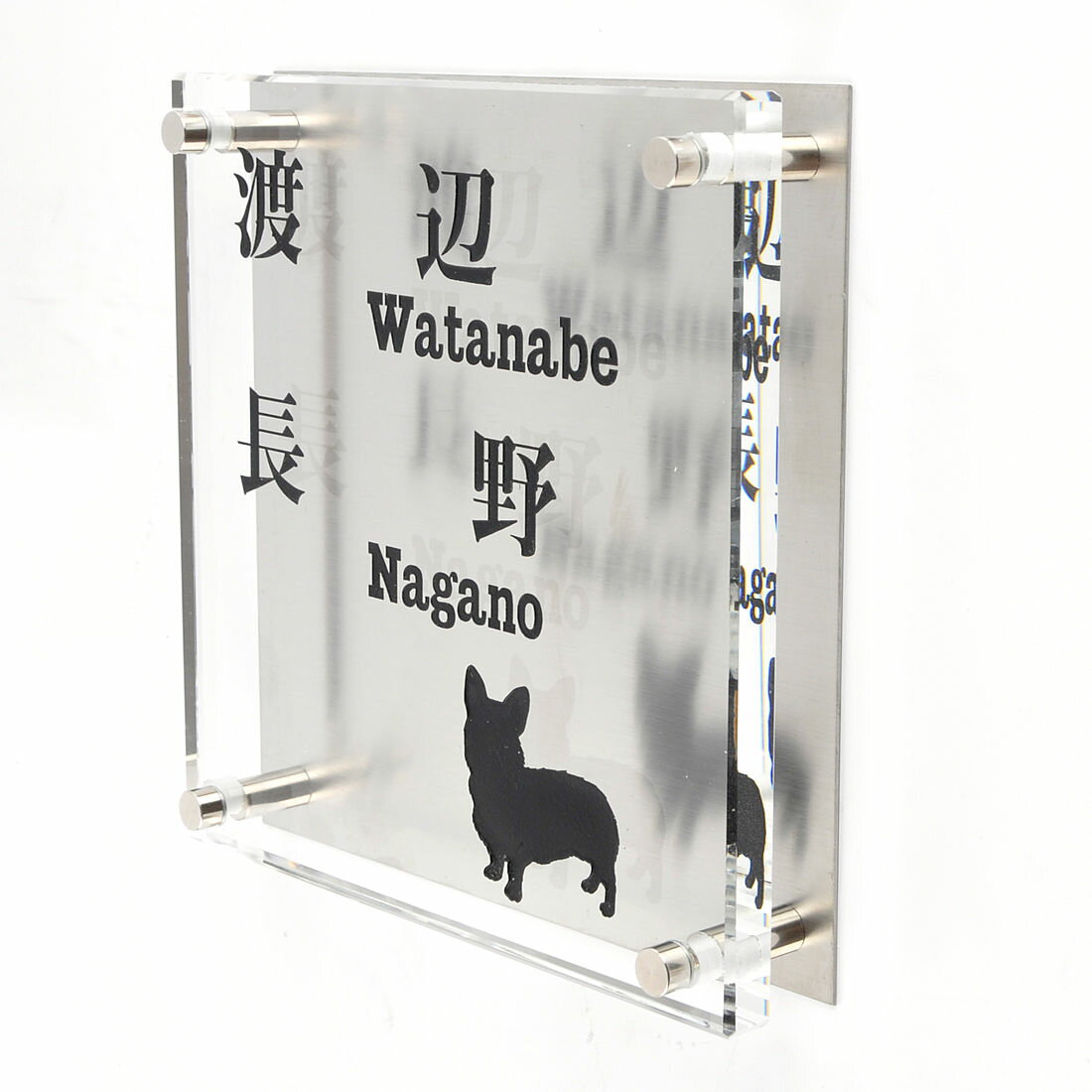 表札のアトリエ ガラス表札 ステンレス板 150x150mm わんこといっしょ 二世帯用 【HLS_DU】【RCP】【楽ギフ_包装】【楽ギフ_名入れ】 attr81attr ctgr1ctgr sml8sml+ctgr1ctgr DOG