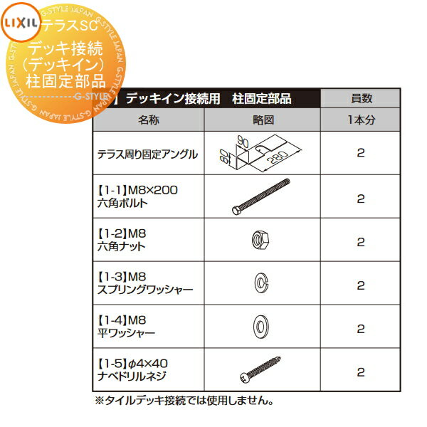 LIXIL テラスSCオプション デッキ接続(デッキイン) 柱固定部品 柱1本用 Z-M022-PTNA