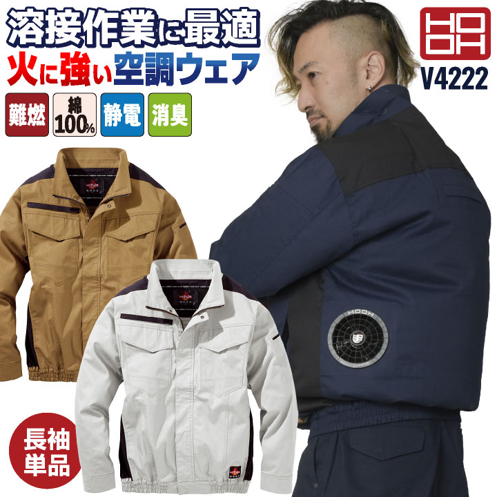 HOOH 難燃 空調作業服 薄手 綿100% 長袖 ブルゾン ジャケット 快適ウェア 空調ウェア 春夏 作業着 涼しい フルハーネス対応 帯電防止 耐炎 耐熱 暑さ対策 熱中症対策 溶接作業 溶接服 工場 製鉄 メンズ レディース 鳳凰 村上被服 mh-v4222-t