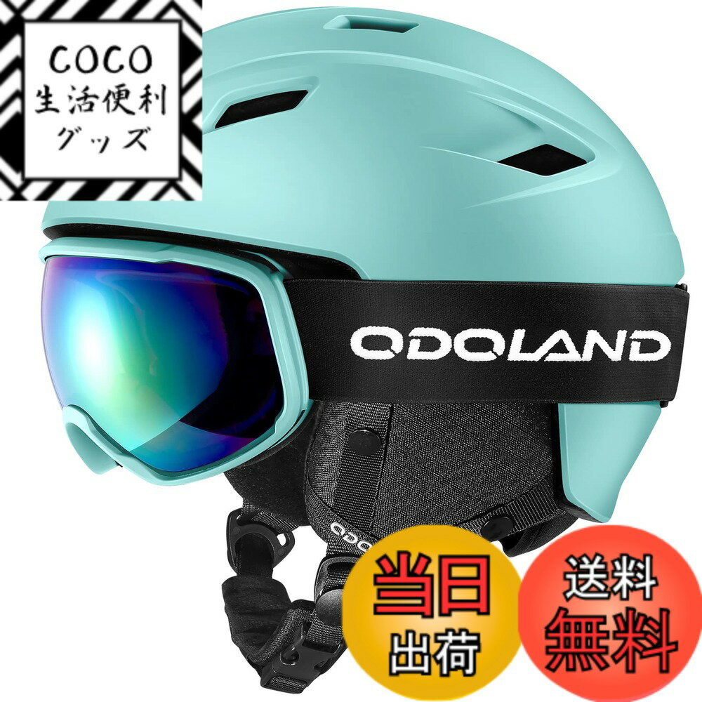 【送料無料】Odoland スキーヘルメットセット ゴーグル付き スノーボードヘルメット ダイヤル式サイズ調整 メガネ対応 ダブル球面レンズ 防風 曇り止め 耐衝撃 UVカット 男女兼用 大人・ジュニア・子供用 色:シアン、サイズ:M