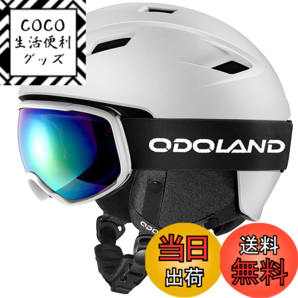 【送料無料】Odoland スキーヘルメットセット ゴーグル付き スノーボードヘルメット ダイヤル式サイズ調整 メガネ対応 ダブル球面レンズ 防風 曇り止め 耐衝撃 UVカット 男女兼用 大人・ジュニア・子供用 ホワイト S