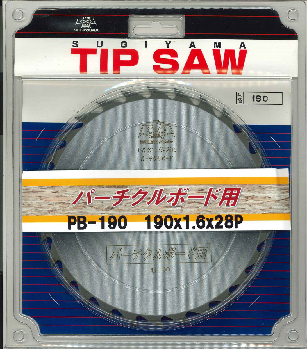 スギヤマ パーチクルボード用チップソー 【PB-190】 外径190mmx刃厚1.6mmx穴径20mmx刃数28P 【代引き不可】【北海道・沖縄・離島配送不可】