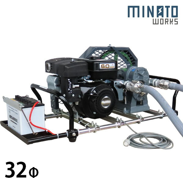 ミナト 32φギヤーポンプ ロビンセル付6馬力エンジン+リモコン停止スイッチ付きセット [ギヤポンプ 灯油 軽油 A重油 廃油]