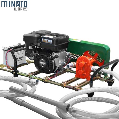 ミナト 2インチ バキュームポンプ ロビン6馬力エンジン+遠心クラッチ付きセット [ラバレックス エンジン式 海水用 排水用 汚水用]