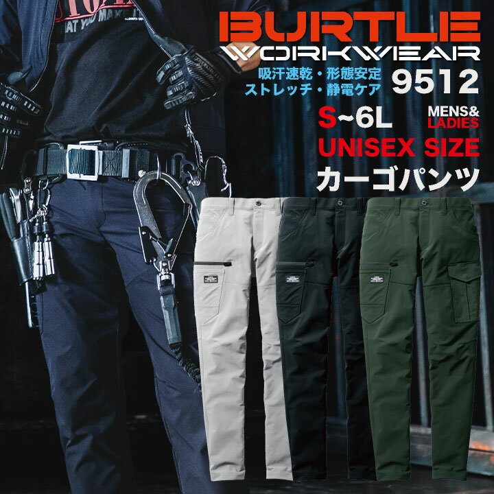 バートル カーゴパンツ 春夏 秋冬 メンズ レディース 大きいサイズ 男女兼用 ストレッチ 吸汗速乾 軽量 おしゃれ スポーティ スタイリッシュ 作業着 BURTLE カジュアル ワークウェア bt-9512-b