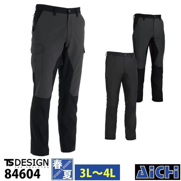 TS DESIGN 藤和 作業服 84604 ストレッチ サマー カーゴパンツ 春夏 3L 〜 4L | 軽量 吸汗速乾 通気性 メンズ 大きいサイズ 黒 グレー