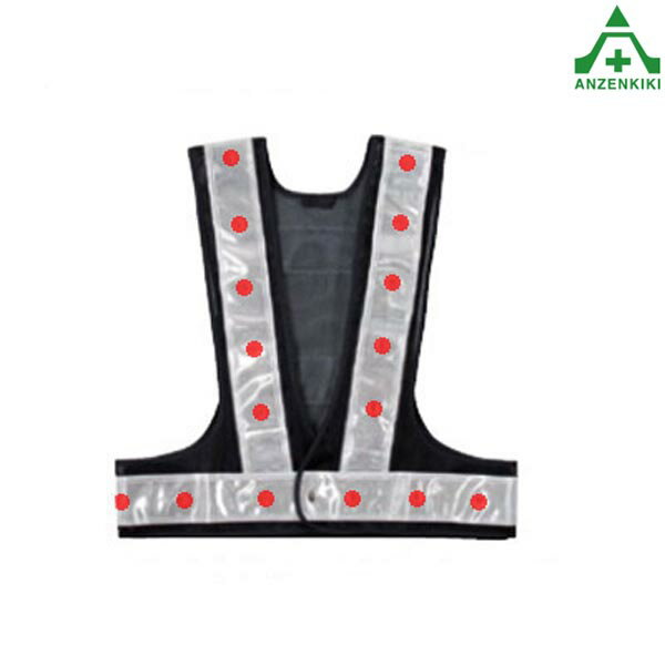 【LEDベスト I型】■光 源:集光レンズ付き高輝度LED×25球 (前面:14球、裏面:11球)■LED輝度数:約10000mcd■電 源:単3乾電池×2本 (別売)■点滅時間:(赤LED) 約60時間■視認距離:500m以上■サイズ:フリー■反射幅サイズ:70mm■背中に文字も入れられます。 (お見積もり致します)別名:LEDチョッキ 安全チョッキ 安全ベスト ポリスチョッキ セーフティーベスト 【ついでに乾電池はどうですか?】