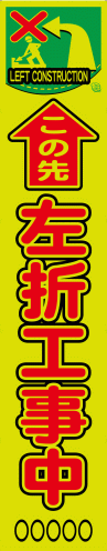 工事用看板 スリム看板 SAP93 この先左折工事中(蛍光プリズム黄緑反射) 275×1400mm