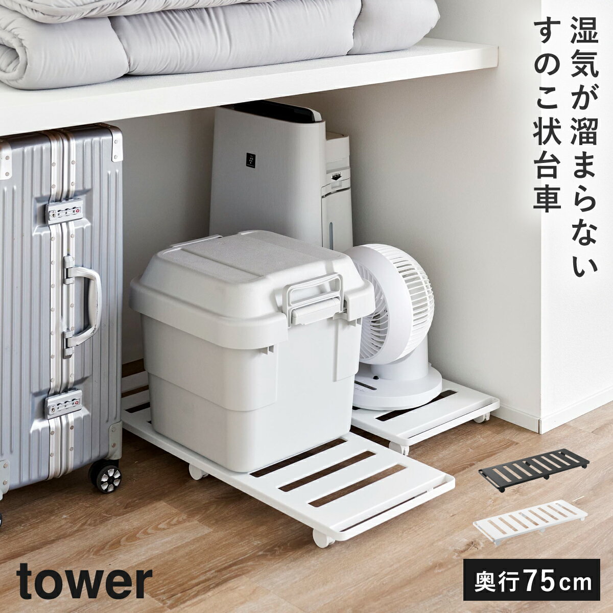 【レビュー特典】 [ 押入れ収納ロング台車 タワー ] タワー山崎実業 公式 tower 1417 1418 ホワイト ブラック / 耐荷重30kg キャスター付き ワゴン すのこ 押し入れ クローゼット ベッド下収納 ハンドル付き ストッパー付き JGS 送料無料