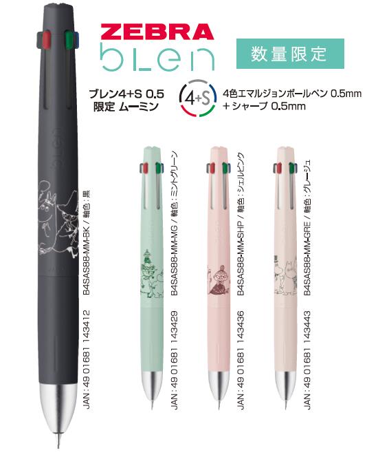 【限定】ゼブラ ブレン 4色+シャープ 0.5mm 限定ムーミンデザイン B4SAS88-MM 4色ボールペン&シャープ