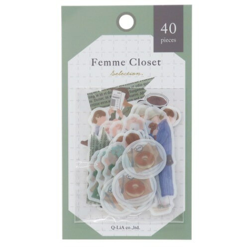 ファムクローゼットシール フレークシール トラッド Q-LIA 手帳デコ デコレーション メール便可おしゃれ シール デザイン 文具 文房具 新入学 新学期見て楽しめるデコレーションシールシリーズこちらはおしゃれをしてお出かけした気分になれる[ファムクローゼット]ダイカットシールが40枚セットになっていますトレンドファッションの女の子と色々なモチーフが入っていておしゃれ手帳やノート、手紙などのデコレーションにぴったりですかわいいシールいろいろあるのでお気に入りを揃えてくださいパッケージサイズ:約77x133mm素材:トレーシングペーパー▼