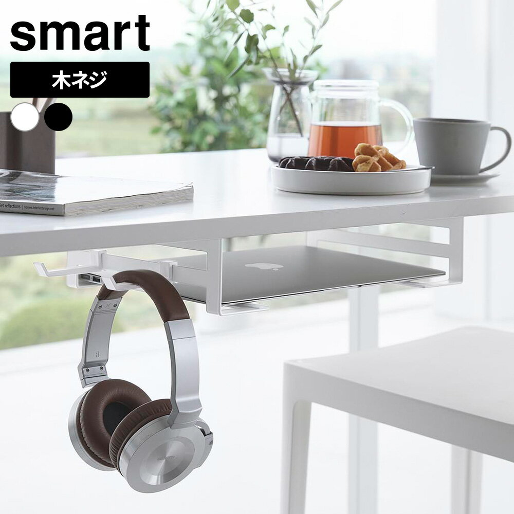 山崎実業 デスク下 ノートパソコン 収納ラック ホワイト 10424 /ブラック 10425 | smart スマート デスク下収納 デスク下 ラック テーブル下 ノートパソコン 木ネジ 後付け ノートPC