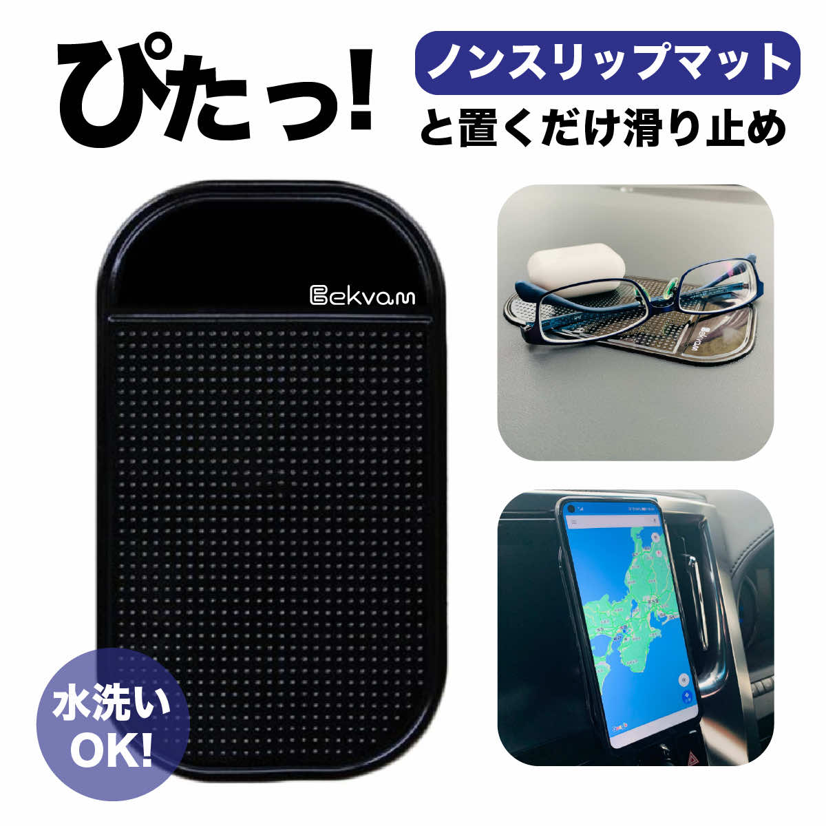 ピタッ!と置くだけ滑り止め! 強力吸着で、置くだけで自然に吸着! 凹凸が摩擦抵抗を強め、車内での置き場所を確保! 水洗いOK! 吸着力が弱くなったり汚れてしまっても 水で洗ってくり返し使用する事ができ経済的! 取付も工具や接着剤なども必要なく置きたい場所に置くだけ!ピタッ!と置くだけ滑り止め! 強力吸着で、置くだけで自然に吸着! 凹凸が摩擦抵抗を強め、車内での置き場所を確保! 水洗いOK! 吸着力が弱くなったり汚れてしまっても 水で洗ってくり返し使用する事ができ経済的! 取付も工具や接着剤なども必要なく置きたい場所に置くだけ!