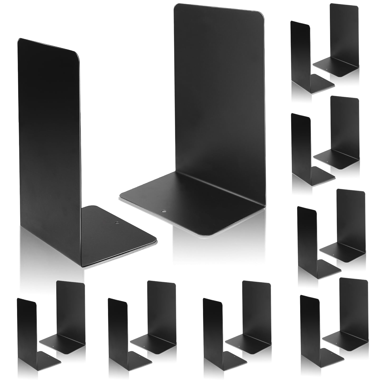 WEWINK PLUS 8組16枚 ブックエンド 金属製 本立て 黒 L型 滑り止め付き倒れない卓上収納 新聞 A4 A5ファイルCD 辞書 雑誌 書類入れ 多機能のブックスタンド 固く変形しにくい 文房具 事務用品 整理整頓の仕切りスタンド