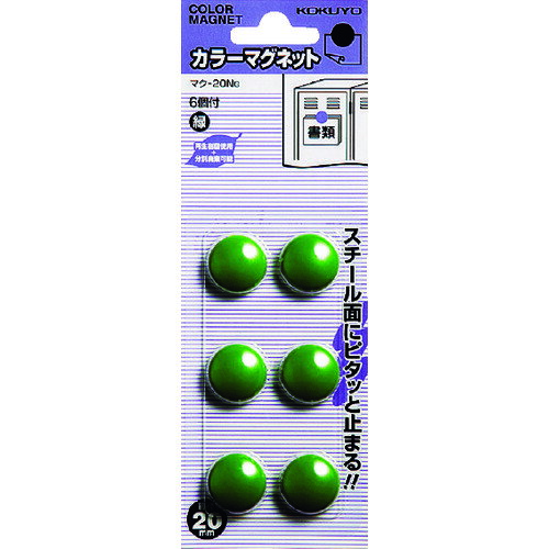 KOKUYO カラーマグネット 直径20mm 6個入 緑 マク−20NG 1Pk (51223427)