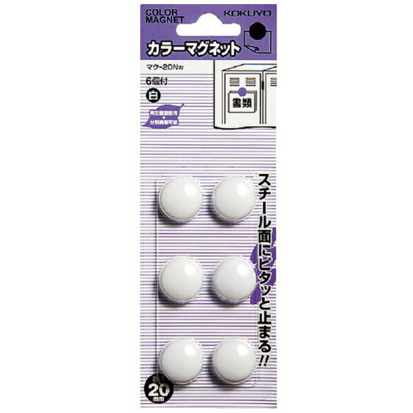 【ゆうパケット対応可】カラーマグネット 直径20mm 6個入 白マク-20NW【コクヨ】