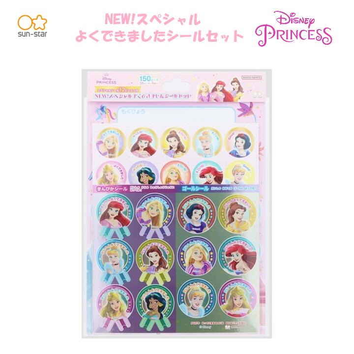 NEW!スペシャルよくできましたシールセット ディズニープリンセス アリエル ラプンツェル白雪姫 ベル シンデレラ ジャスミン きんぴかシール ゴールシール 表彰状台紙付 ステップアップシール ディズニー サンスター文具 2202429A