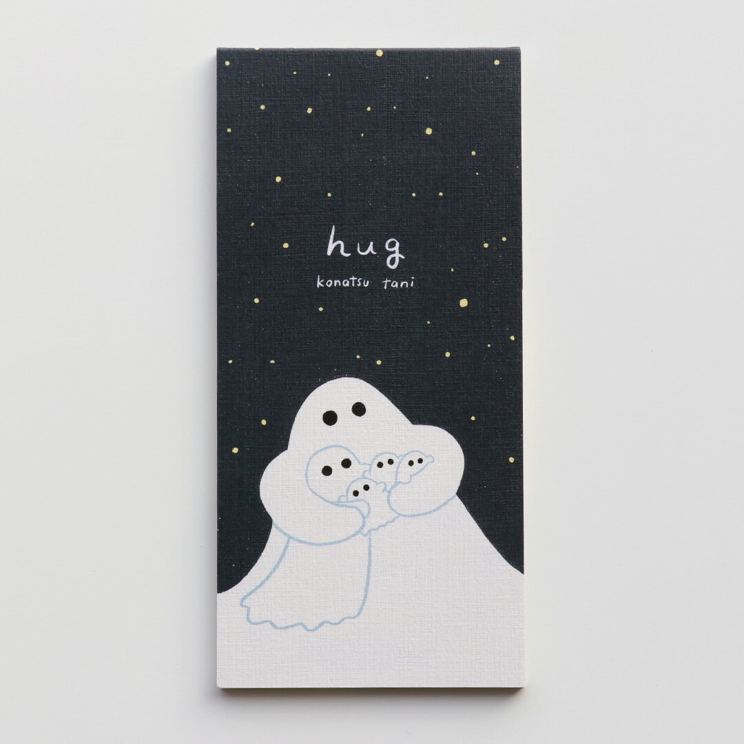 一筆箋 谷 小夏 Konatsu Tani [ hug ] ぎゅっと優しくハグし合うオバケたちが描かれた、かわいらしい一筆箋。 自分や、お手紙を送る相手の気持ちに寄り添ってくれますよ。 4柄入りなので、自分の気分や送る相手に合わせてお使いいただけます。 ざらりとした質感が楽しい美濃和紙を使用しており、和紙独特の書き心地もお楽しみいただけますよ。 商品詳細 サイズ 8cm×16.8cm 4柄5枚20枚綴り 素材 美濃和紙 注意事項 ・メール便(ネコポス)発送可能商品です。 一筆箋 アイテム一覧
