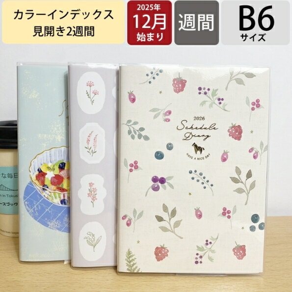 KUTSUWA クツワ 2026 2025年 12月始まり 手帳 2週間式(ホリゾンタル) B6 カラーインデックス手帳 週間 ウィークリー 2026年1月始まり 月曜始まり インデックス 大人かわいい かわいい スケジュール帳 手帳のタイムキーパー