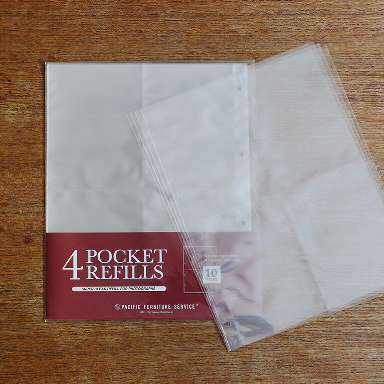 【ブラックフライデー★P最大47倍】PACIFIC FURNITURE SERVICE[パシフィックファニチャーサービス]P.F.S. 4 POCKET REFILLS クリアポケットリフィル (10枚入り)[ファイルポケット 4ポケット 4穴 A6 ハガキ 写真 アルバム]☆