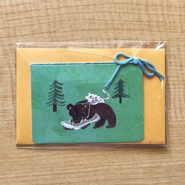 【田中マリナ/ミニミニメッセージ/木彫りの熊】 「ほんの小さな気持ちをほんの小さなお手紙で!」イラストレーター「田中マリナ」が描く北海道の小さな小さなメッセージカードにしました♪ 木彫りの熊とカワイイ猫のイラストを描いた二つ折りの可愛いメッセージカードに専用の小さな封筒がセットされています。 家族に、友達に、恋人に、手書きのメッセージを届けてみませんか? (イラスト/田中マリナ) ・メッセージカードイラスト:木彫りの熊 ・メッセージカードサイズ:68×46mm(二つ折り) ・封筒サイズ:103×66mm 注意事項:お使いのモニターの発色具合によって、実際のものと色が異なる場合がございます。