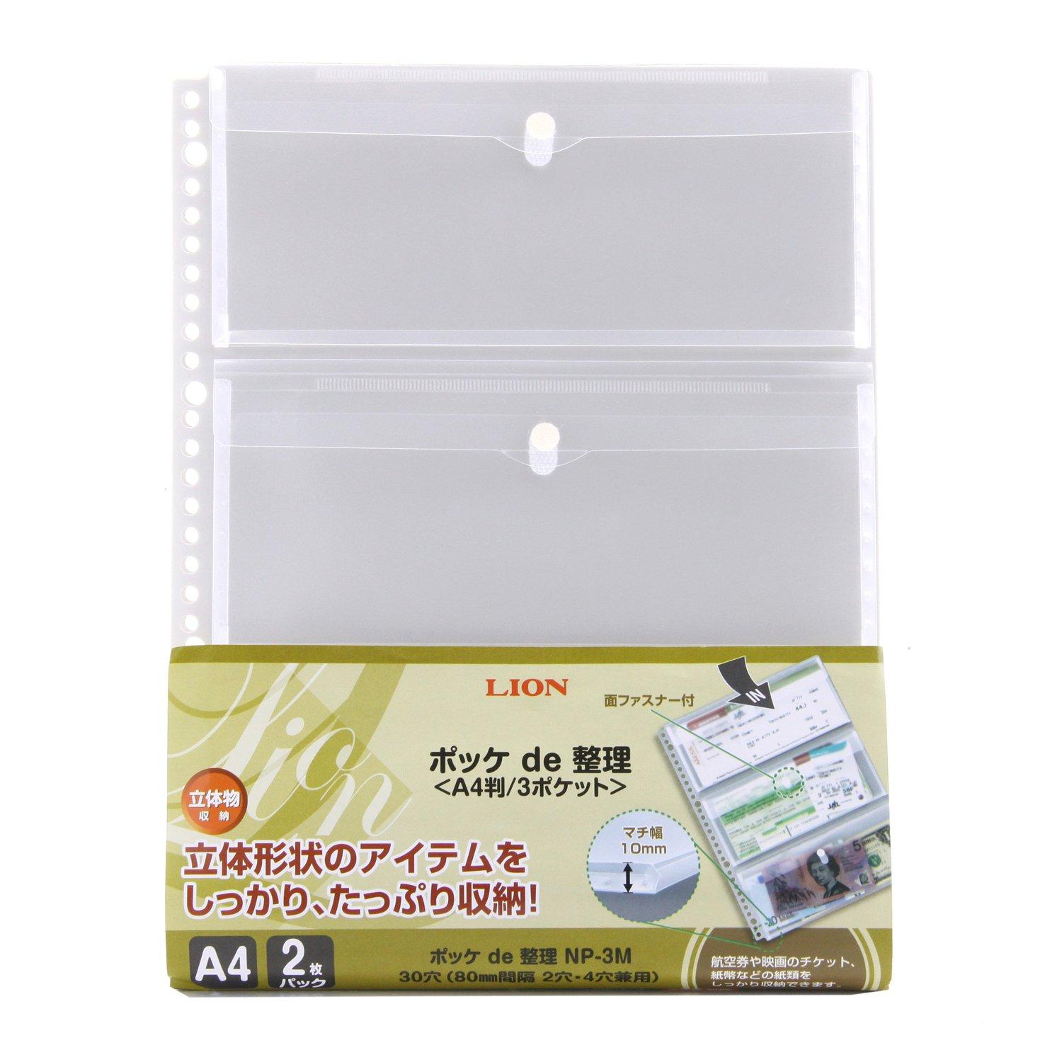 (まとめ買い)ライオン事務器 ポッケde整理 A4タテ 2・4・30穴 片面3ポケット マチ・フタ付 2枚入 NP-3M 147-33 〔×5〕 【北海道・沖縄・離島配送不可】